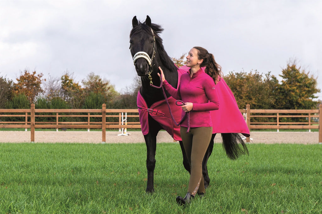 Die Abschwitzdecke Alaska mit abgepolstertem Widerrist ist die ideale Abschwitzdecke für Pferde und Ponys. Das atmungsaktive Fleece-Material verfügt über eine optimale Schweißaufnahmefähigkeit. Die Decke lässt sich vorne mit Metallverschluss verschließen. Die Decke ist maschinenwaschbar bei 30°C und trocknergeeignet. Die Abschwitzdecke Alaska ist in vielen verschiedenen Farben und Größen erhältlich.