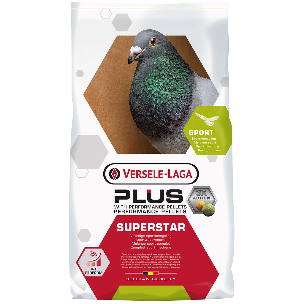 Die Versele-Laga Plus Superstar Sportmischung wurde speziell für Brieftauben entwickelt, um sie optimal auf den Flug vorzubereiten und ihre Regeneration nach der Ankunft zu beschleunigen. Dank der hochwertigen Körnermischung und der innovativen Plus-Pellets erhalten die Tauben die ideale Kombination aus Kohlenhydraten, Proteinen und Fetten.